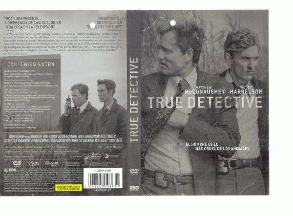 Reparto: Int.: Matthew McConaughey, Woody Harrelson.Resumen: Serie de TV de 8 episodios (2014). Dos detectives de Lousiana, Rust Cohle (Matthew McConaughey) y Martin Hart (Woody Harrelson), vuelven a investigar el difícil caso de un asesino en serie en el que ya habían trabajado. Obligados a regresar a un mundo tan siniestro, el avance de la investigación y el mayor conocimiento mutuo les enseñan que la oscuridad reside a ambos lados de la ley. (FILMAFFINITY)
