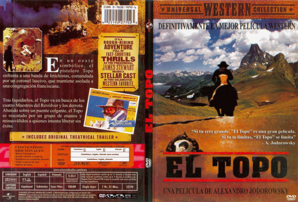 Reparto: Interpretes: Alejandro Jodorowsky, Brontis Jodorowsky, Alfonso Arau, Mara Lorenzio.Resumen: En un Oeste imaginario, el pistolero Topo se enfrenta a una banda de fetichistas, dirigida por un coronel lascivo, que tiene atemorizada a una congregación franciscana. (FILMAFFINITY)