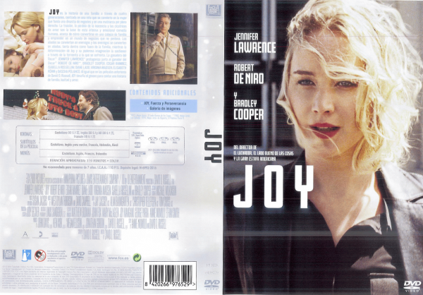 Reparto: Interpretes: Jennifer Lawrence, Robert De Niro, Bradley Cooper.Resumen: Joy Mangano, una humilde trabajadora de Long Island, acabó convirtiéndose en una popular inventora de productos del hogar y también en uno de los rostros más conocidos de la teletienda americana. (FILMAFFINITY)